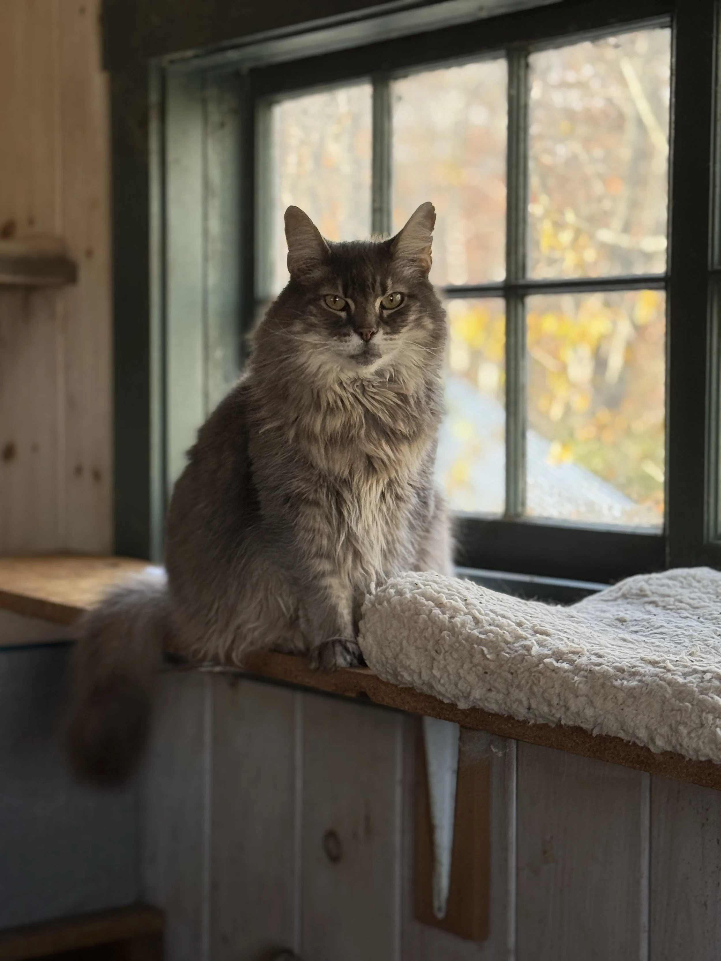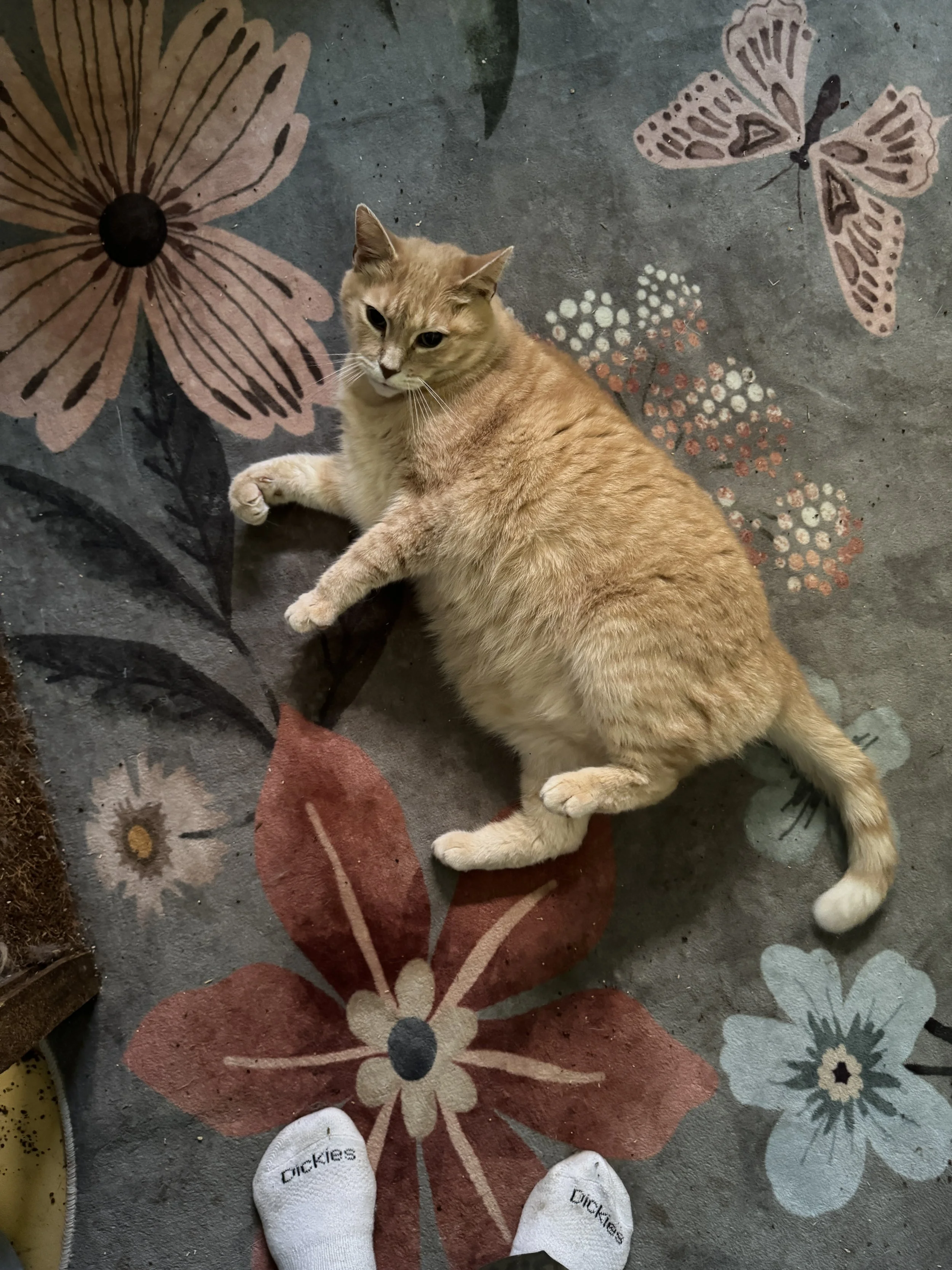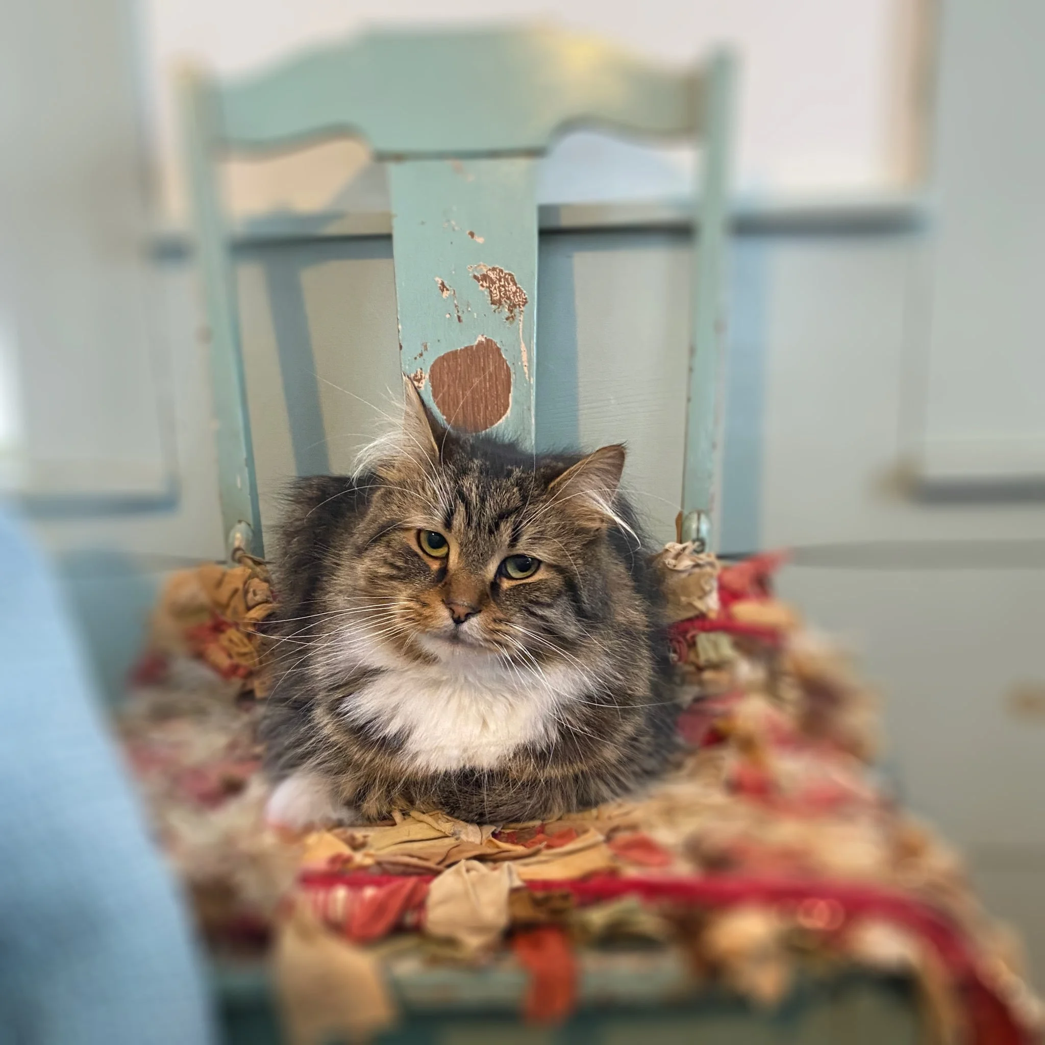 Claire [15+ lost her elder owner]; Peach, Orange, Tippy [raised by a woman who died of cancer and she told her family about us before she passed]; Nuffy and Jonathan [elders who lost their owner]; Francine [arrived and we were unable to touch her, took two years but now she loves petting]; Robby and Salty Fritz [neglected and eventually lost his home in a fire]; Omar and Oscar [brought in together as father-son from an overcrowded breeding home]; Franklin Muffinpants [farm cat needing home]; Petula Puffins [brought in after surviving the death of her mother in birth, was extremely malnourished and 1/3 normal size];